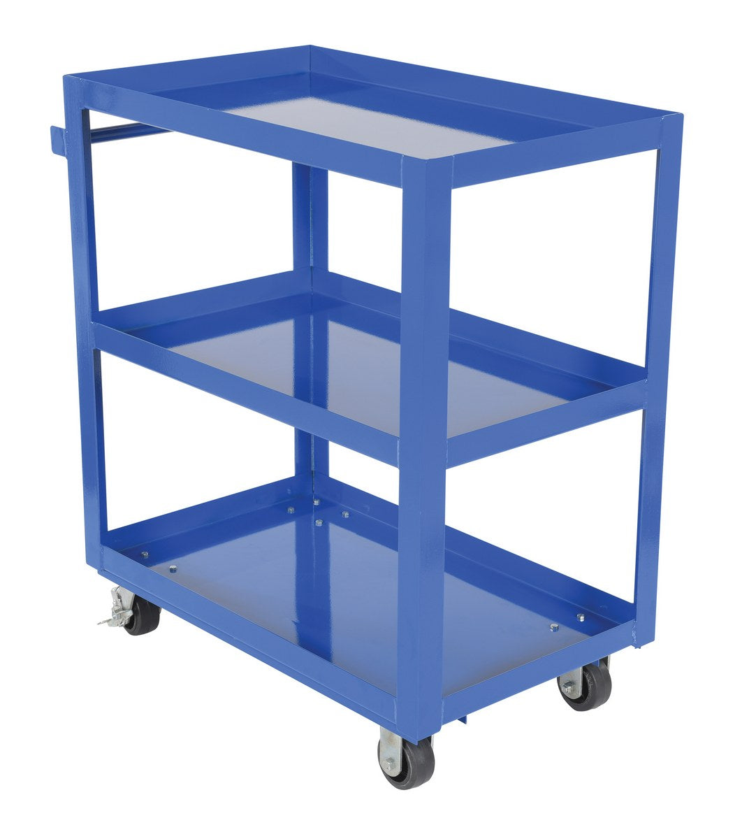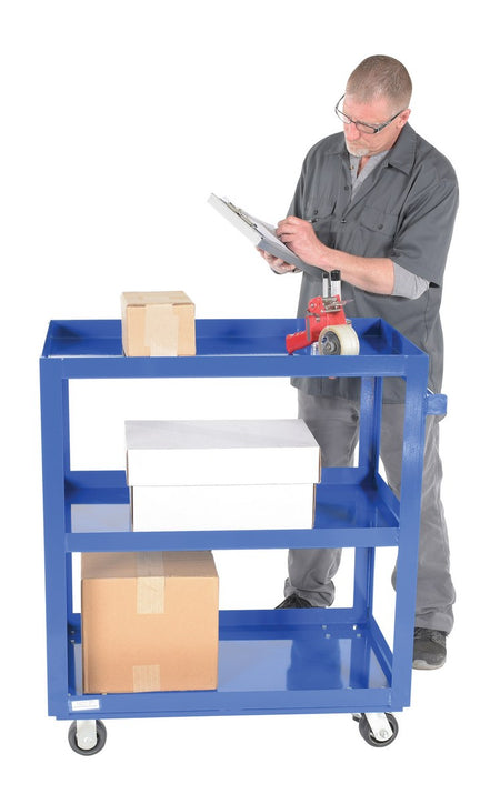 The Vestil SCS3-2236 Steel Service Cart provides heavy-duty strength and dependable mobility for transporting parts, boxes, and supplies. It features three welded steel shelves with turned-up lips on all sides to help keep items secure while moving.