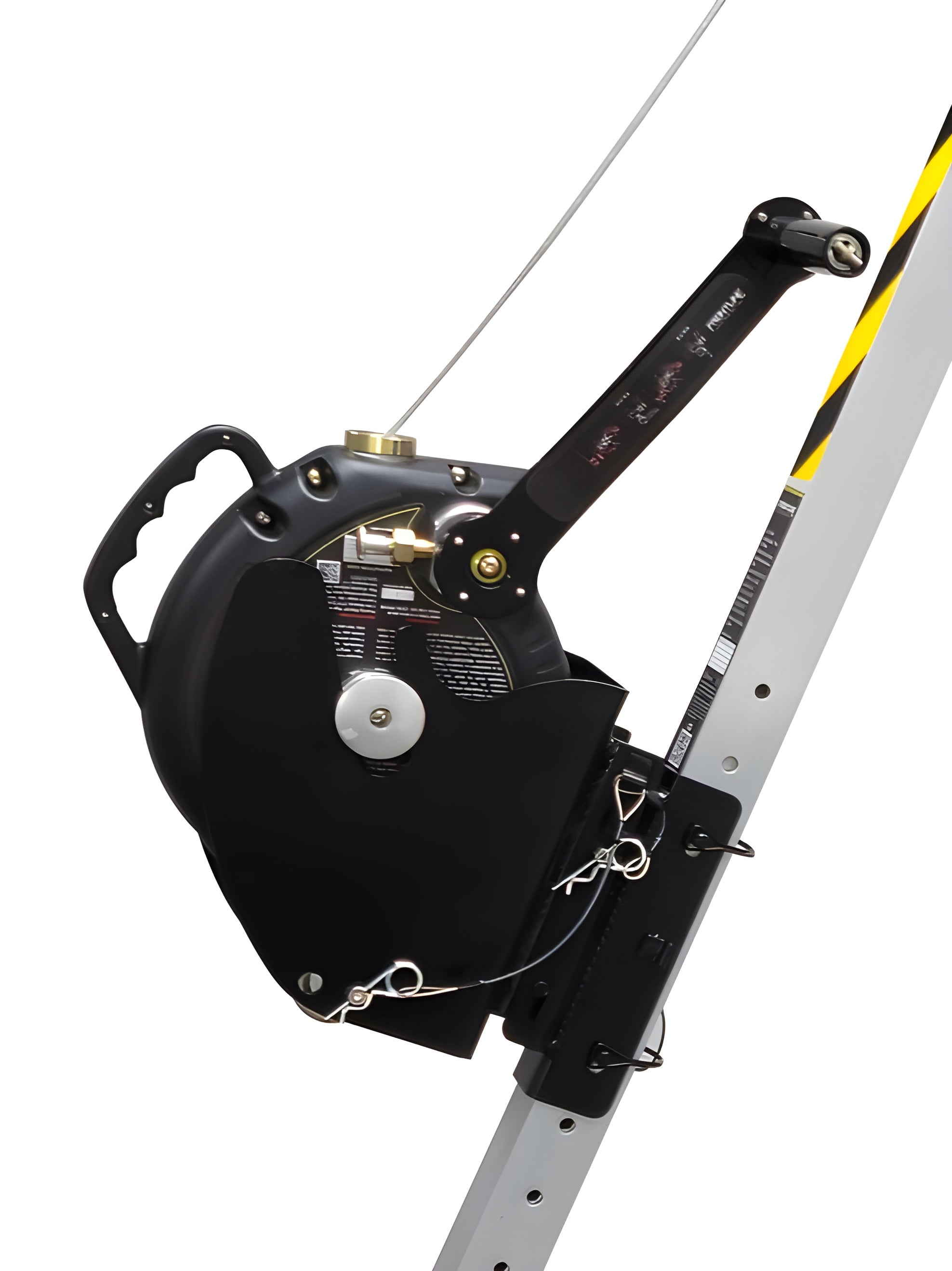 The system includes a 60' galvanized steel winch and a 60' 3-Way Self-Retracting Lifeline (SRL), providing both fall protection and smooth rescue capabilities. The tripod features telescoping legs with safety shoes for secure placement on various surfaces and auxiliary eye bolts to accommodate rescue equipment. The double pulley system, integrated into the tripod head, allows independent cable pass-through for winch and retrieval devices. For added convenience, the MEGApod comes with a carry bag for easy transport.