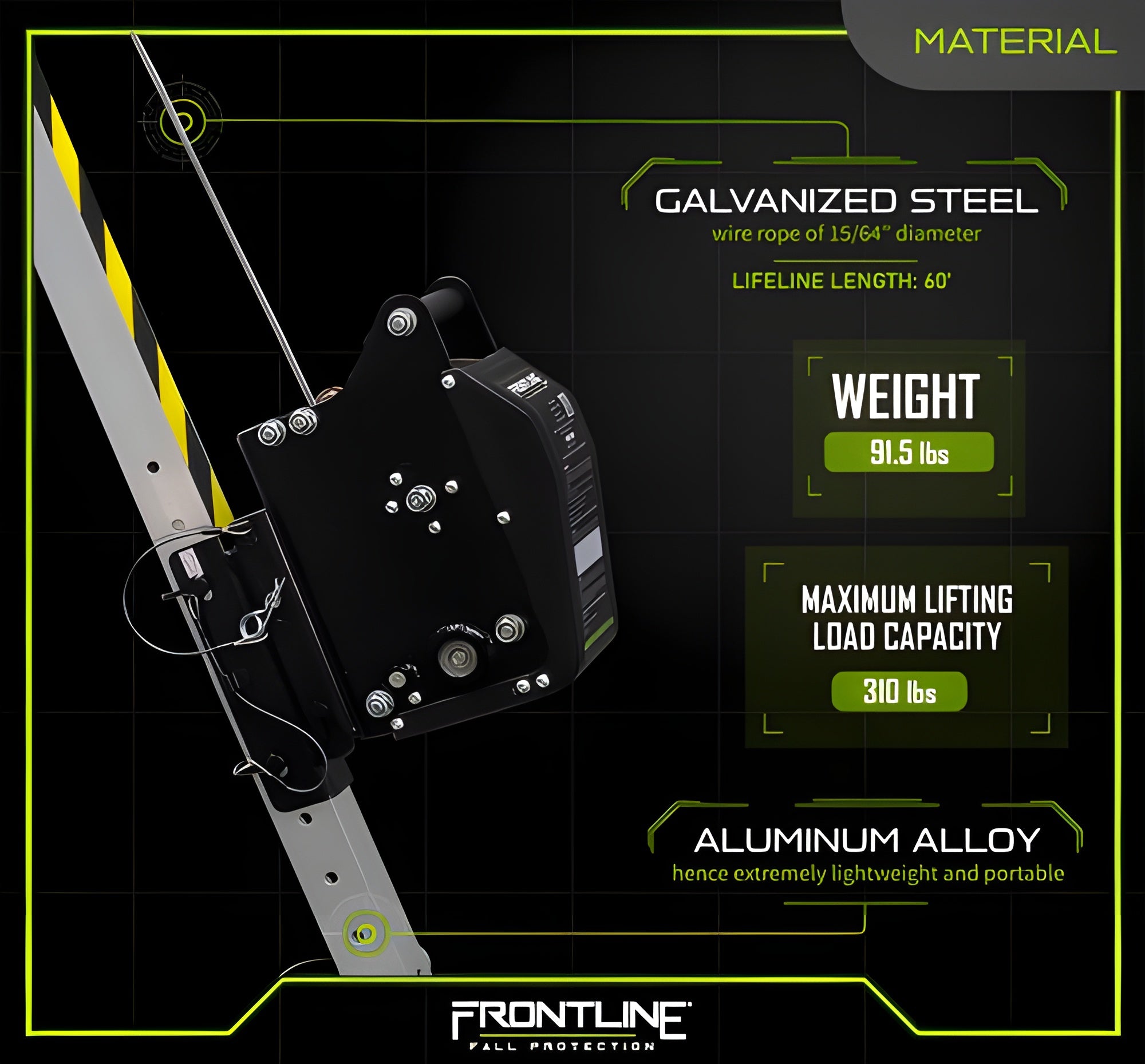 The Frontline TAN10RU MEGApod Confined Space Kit provides a reliable rescue and retrieval solution for confined space entry operations. Made from durable yet lightweight aluminum, the 10' tripod is designed for fast, tool-free setup by a single person, making it ideal for demanding job sites.