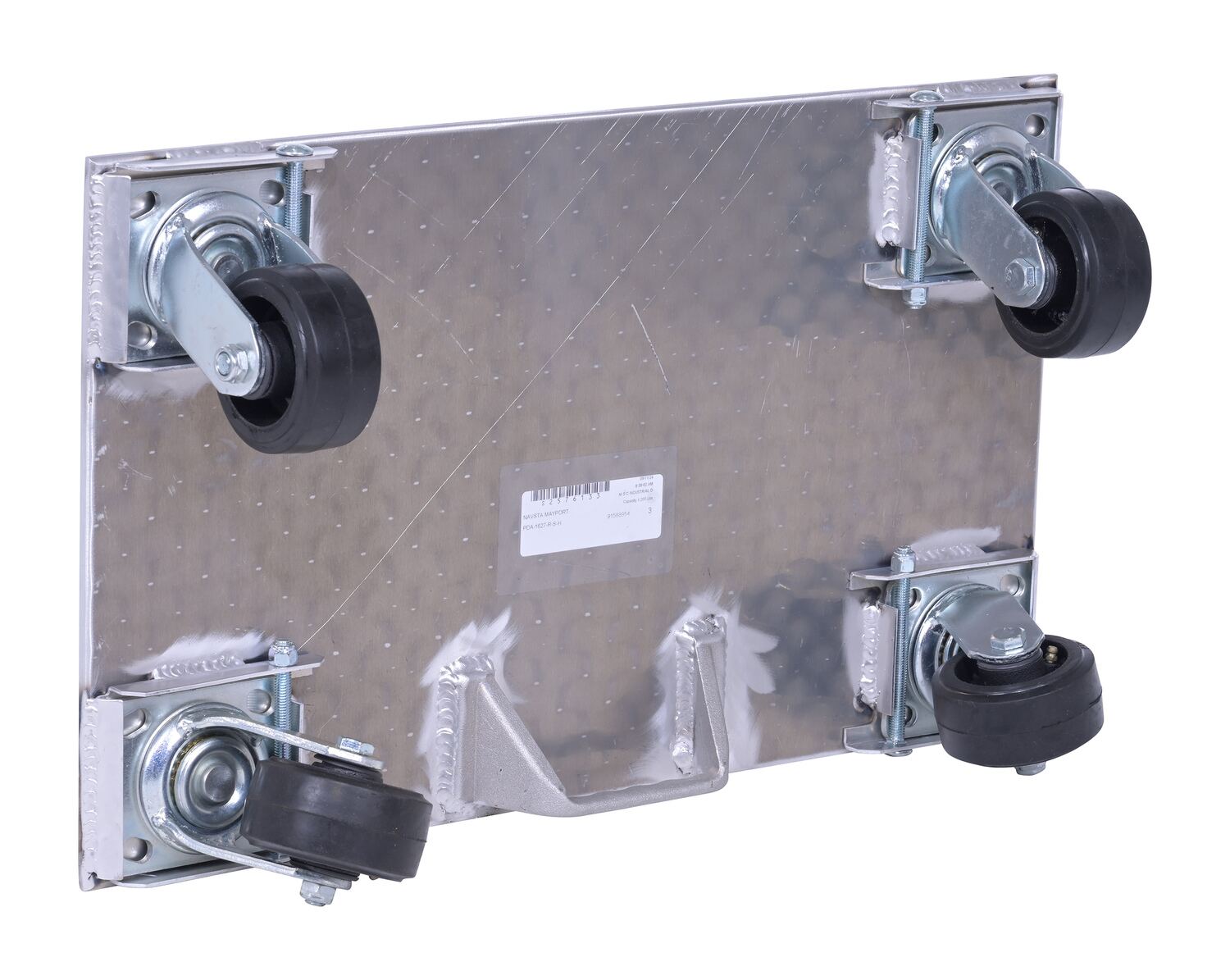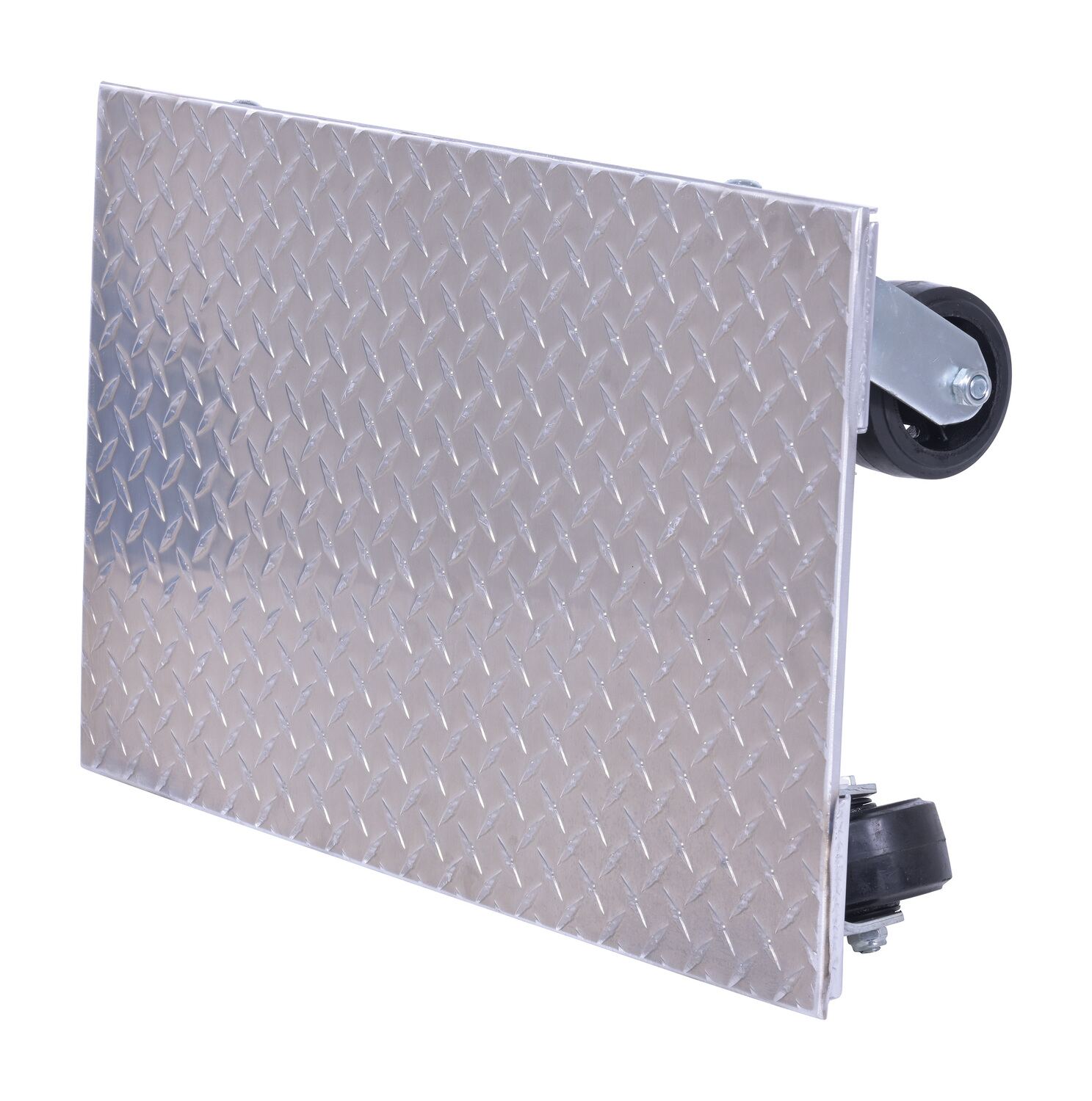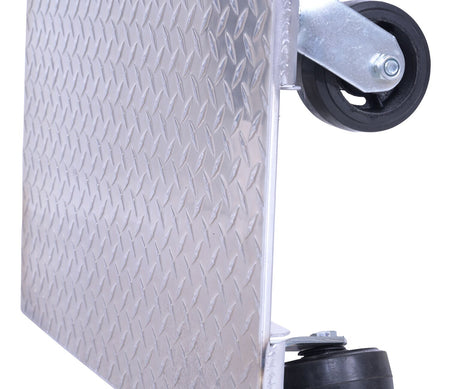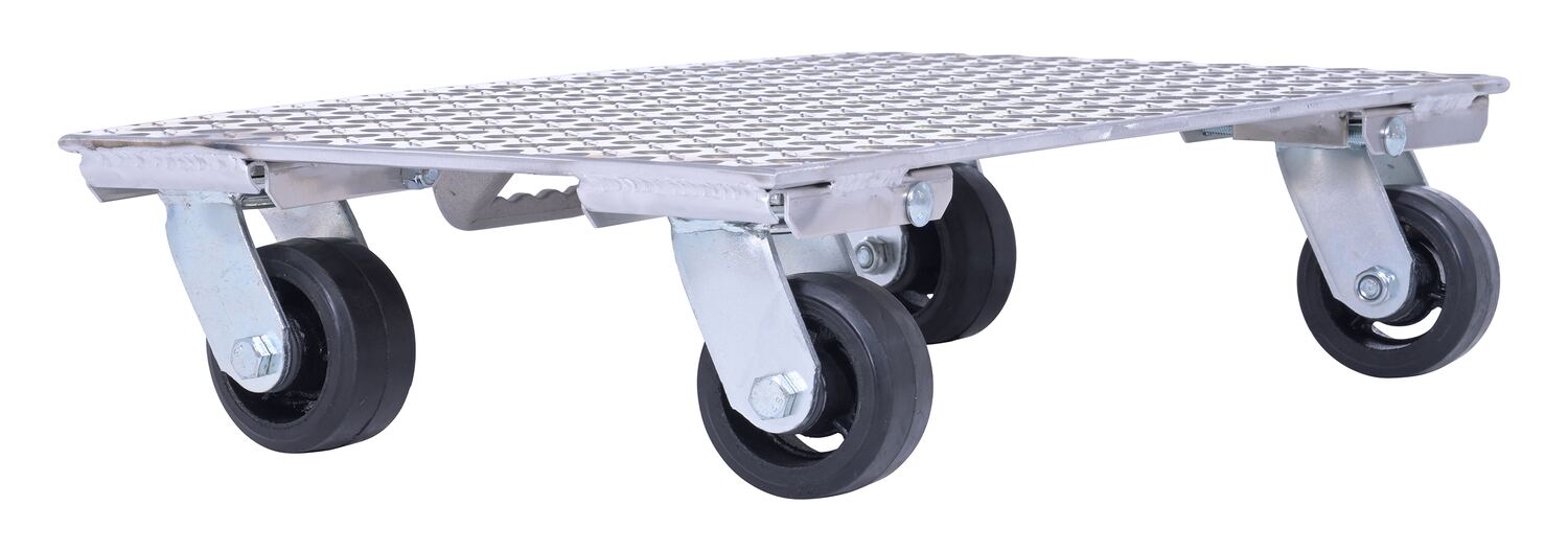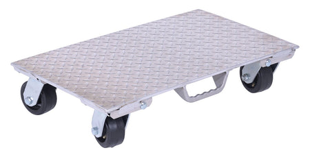 The Vestil PDA-1627-R-S-H Aluminum Plate Dolly is built from raised diamond tread plate for extra grip and strength, while its lightweight aluminum construction makes it easy to handle.