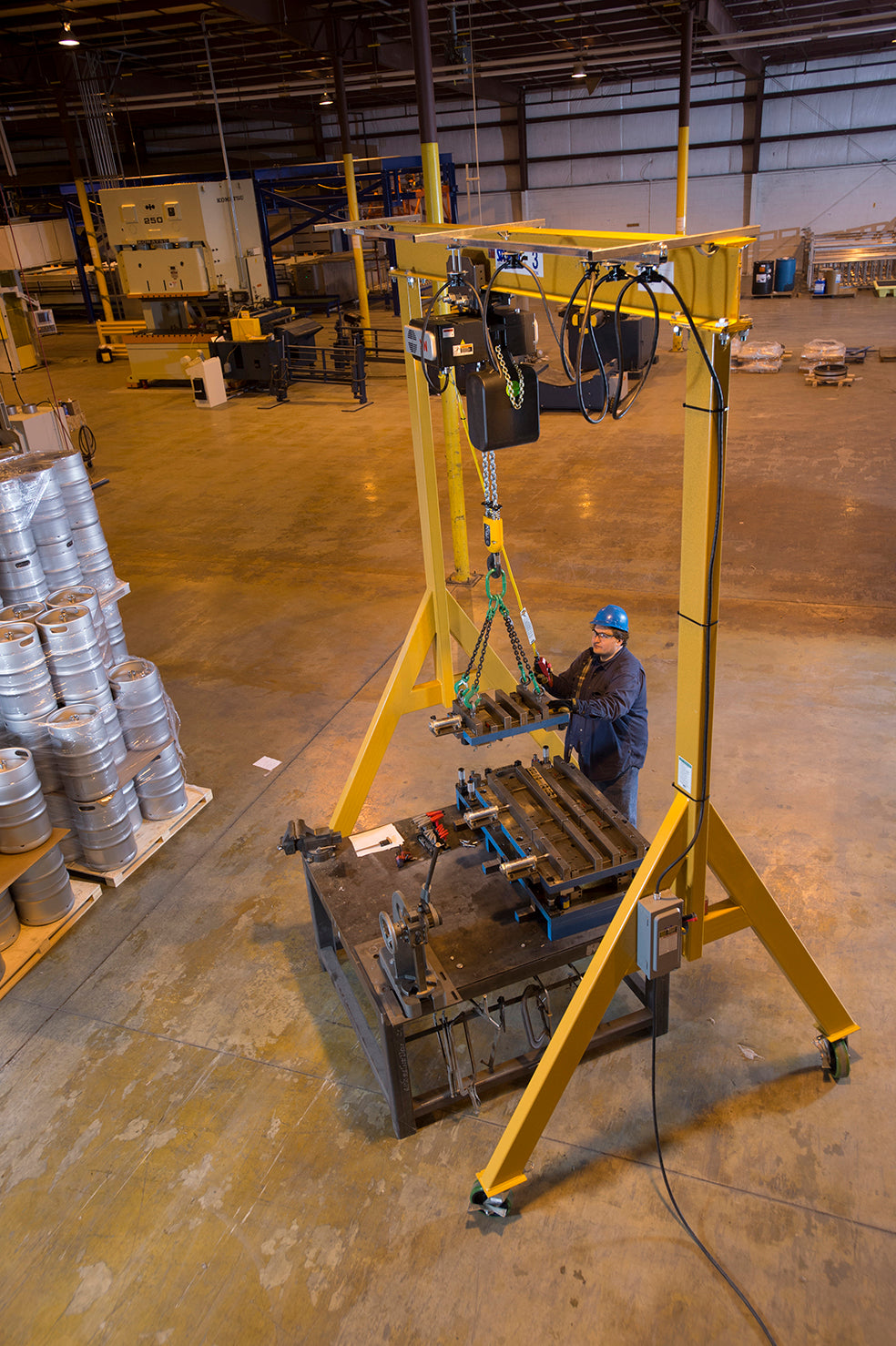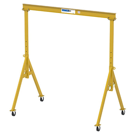 Spanco's A-Series steel fixed height gantry cranes are portable and designed to be moved under load if required. Made in the U.S.A. with high-quality steel and constructed by AWS certified welders. The fixed height A-series offers an economical alternative to the adjustable height version.