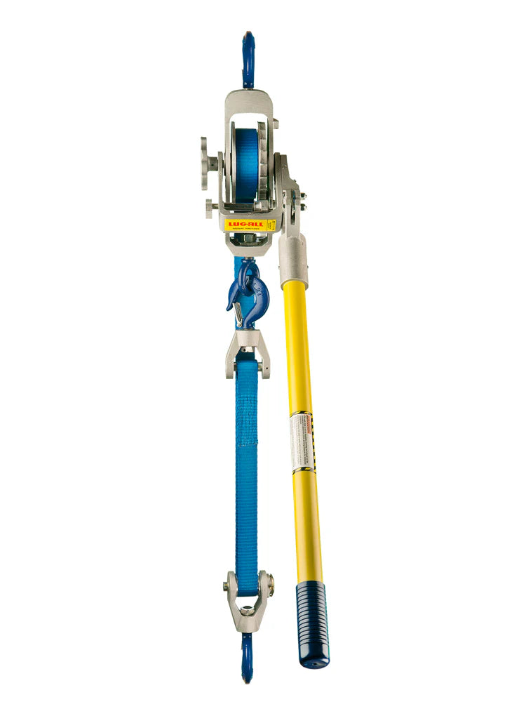 The Lug-All 40-A is a lightweight, industrial-grade 2 ton web strap hoist designed for reliable lifting and pulling in construction, utility, and maintenance applications. Weighing just over 13 pounds, this model offers strong performance in a compact, easy-to-handle design, making it ideal for jobs where portability is important.