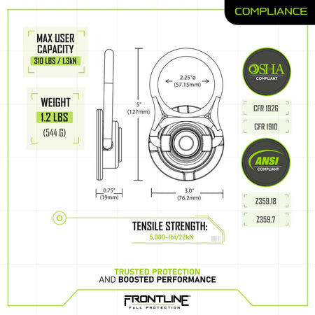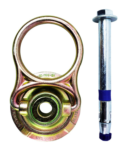 The Frontline COM345K MEGA Swivel Concrete Anchor is a heavy-duty, reusable anchorage solution designed for use in concrete applications. With a 360° rotating and 180° pivoting D-ring, this anchor minimizes side loading and enhances user mobility, making it ideal for fall protection, rescue, hoisting, and tie-back scenarios.