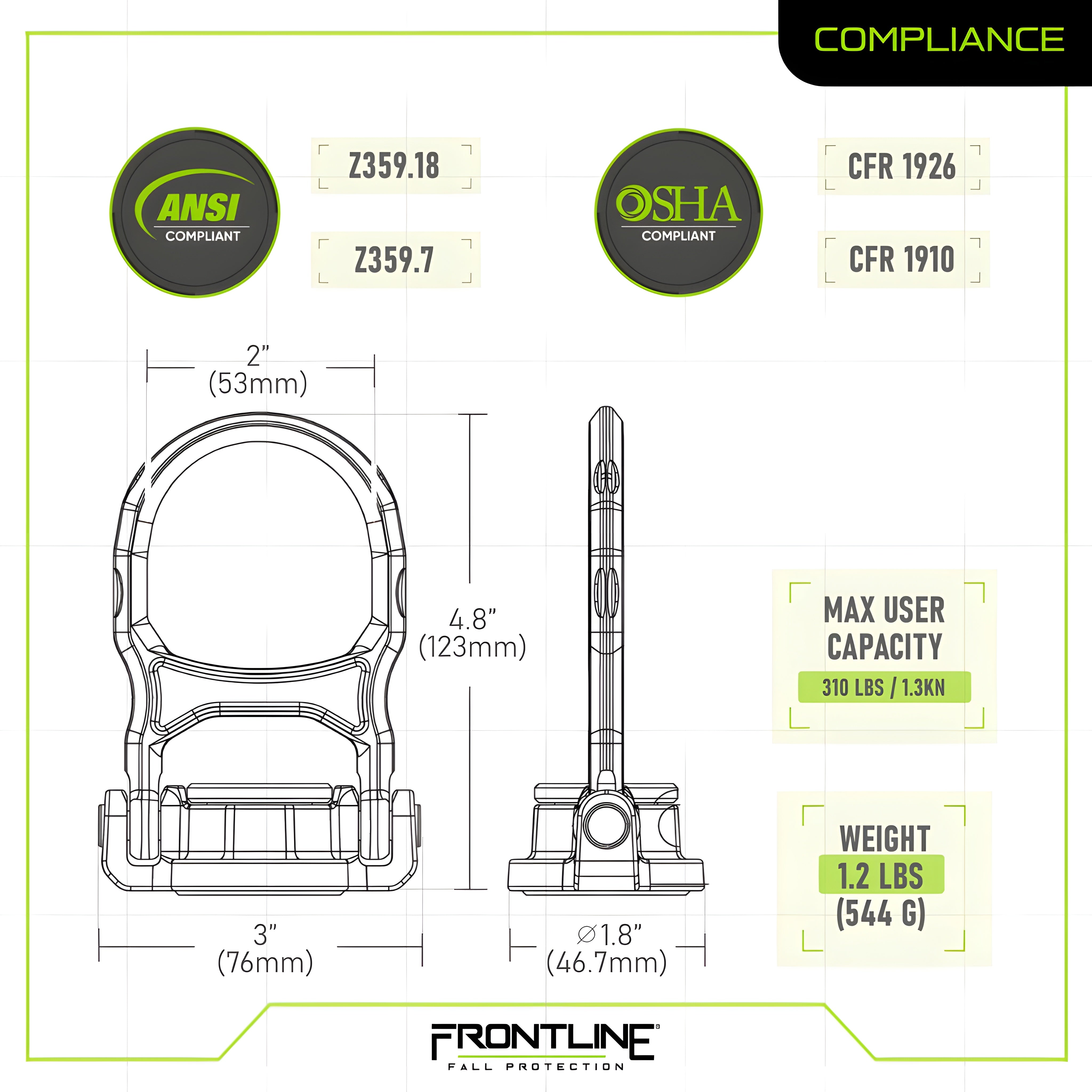 The Frontline STWD5K ALPHA Swivel Anchor is a compact, highly durable solution for steel substrate anchorage, designed for both permanent and temporary installations. Featuring a 360° swiveling D-ring that pivots 180°, this anchor offers superior mobility and minimizes the risk of side loading or accidental disengagement.