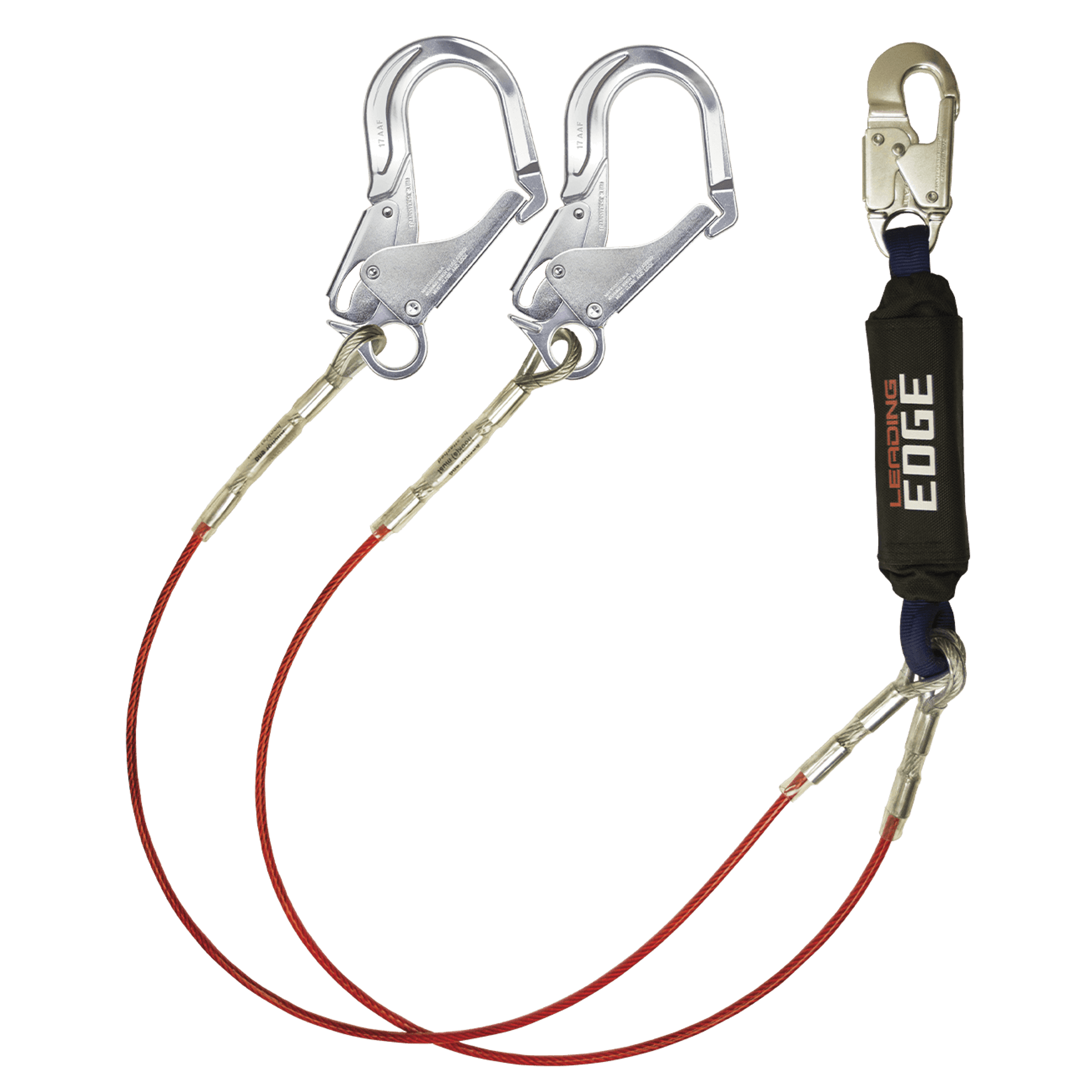 6' Leading Edge Cable Energy Absorbing Lanyard, Double-leg with Aluminum Rebar Connectors – 8354LEY3A – FallTech