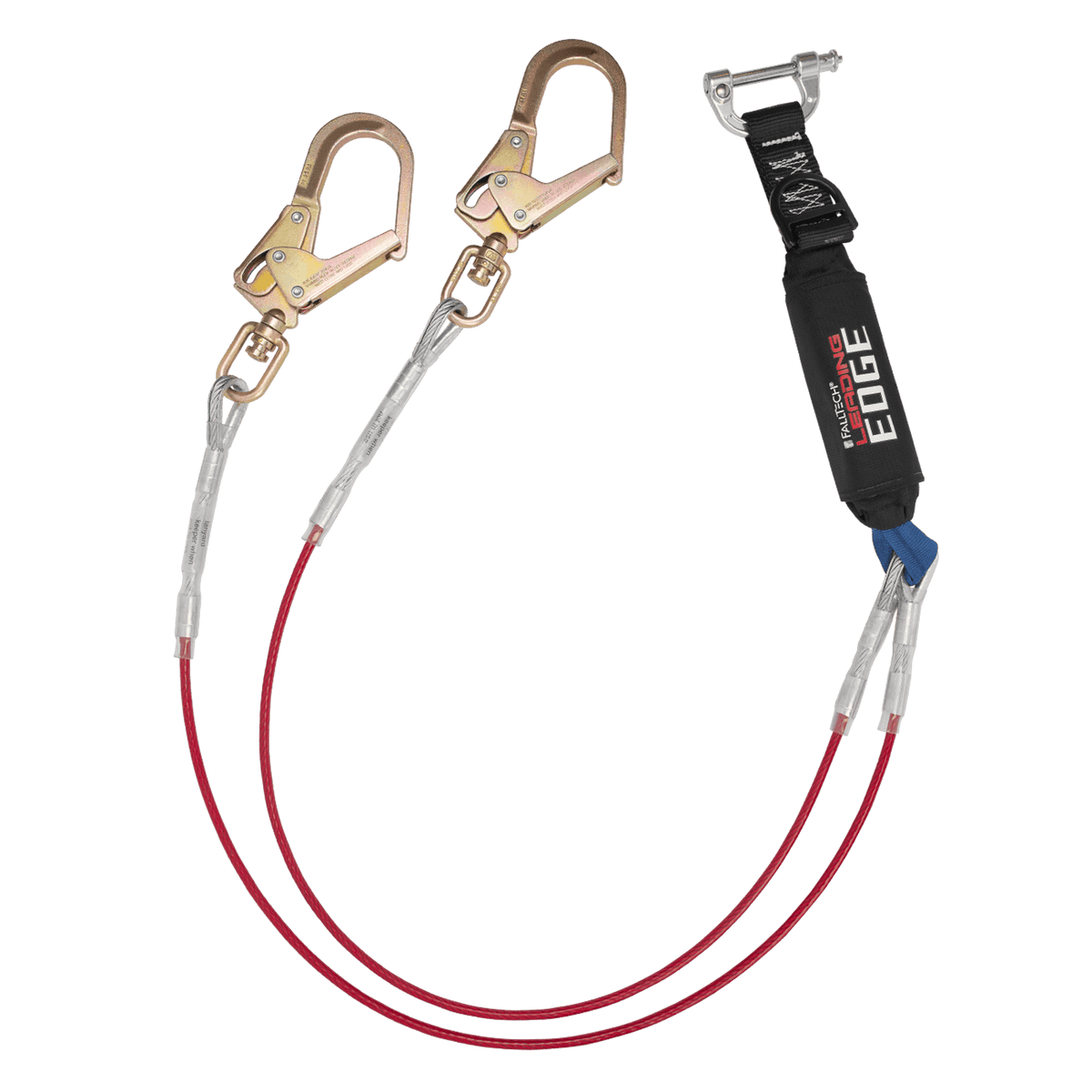 The FallTech 8354LEYC2D Leading Edge Cable Energy Absorbing Lanyard is built for work on sharp, abrasive leading-edge surfaces where enhanced cut resistance and dual free-fall classifications are required. Its 1/4" galvanized steel cable provides superior durability against edge hazards, while the dual-class energy absorber supports both 6 ft overhead and 12 ft foot-level free fall applications for users up to 310 lb.
