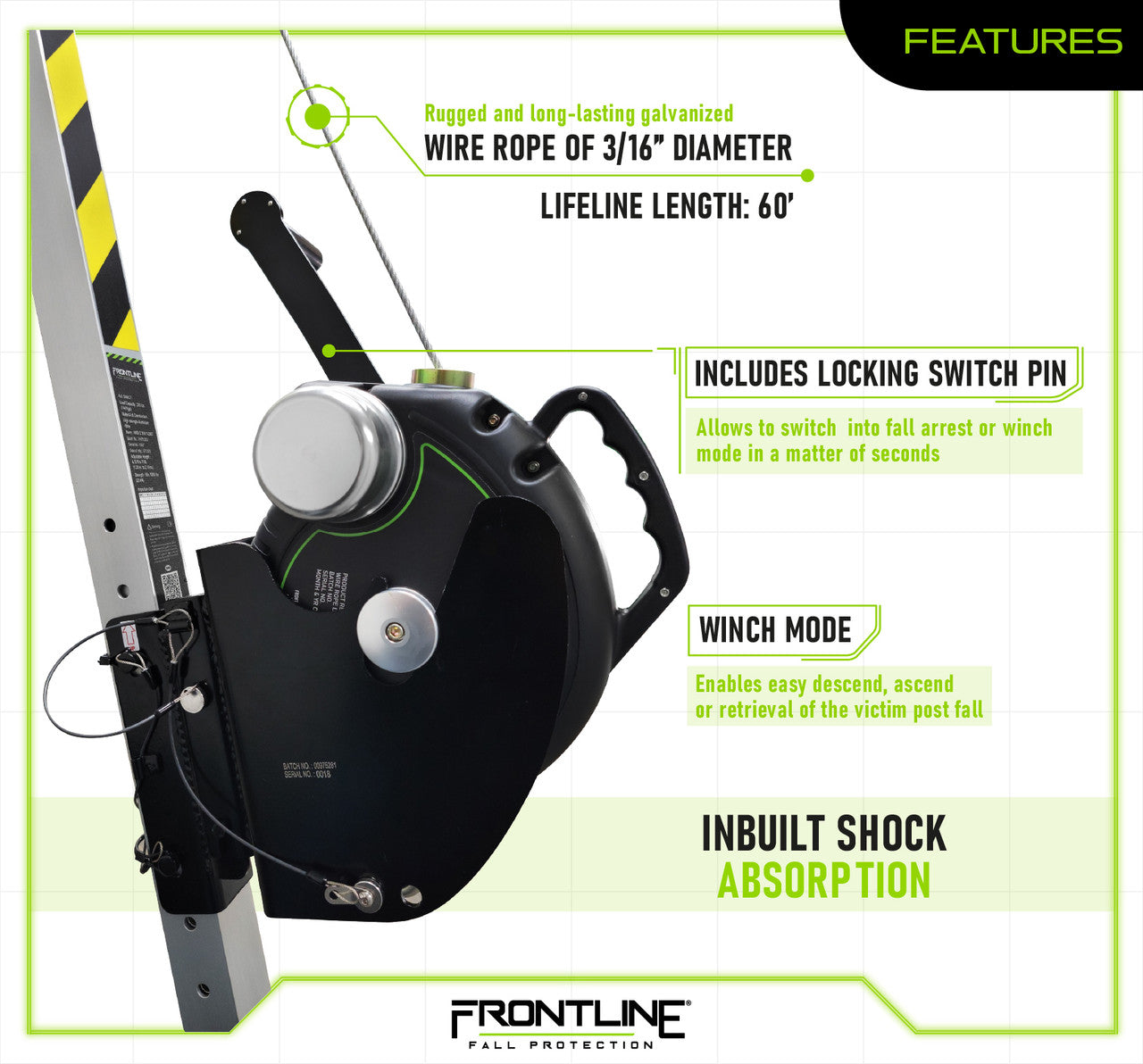 The Frontline RPG603W MEGApod 3-Way Self Retracting Lifeline with Retrieval System is a versatile solution designed for both confined space access and fall arrest scenarios. Whether ascending, descending, or needing emergency retrieval, this unit offers the flexibility to adapt on the job.