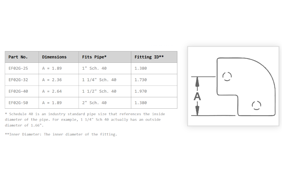 Like all Easyfit fittings, the EF02G is hot-dip galvanized for excellent corrosion resistance and long-lasting performance in both indoor and outdoor settings. It’s compatible with Easyfit’s structural tubing and installs easily with just an allen wrench—no welding required.
