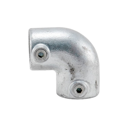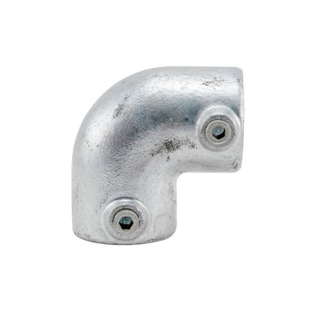 The Easyfit 90 Degree Elbow (EF02G) provides a clean, right-angle connection between two pipes, making it ideal for turning handrails, terminating railings to posts, or building custom pipe-based structures. Its design ensures strength and precision in applications requiring a reliable 90-degree joint.