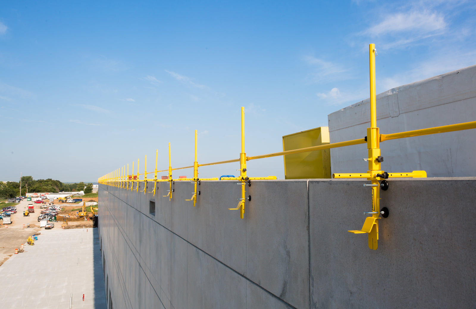 The All-In-One Kit is available in a variety of sizes to accommodate different applications. The kits come with everything you need to set up a temporary guardrail, including posts, rails, hardware, and instructions. All-In-One Post designed for mounting to parapets, structure edges or slab overhangs.