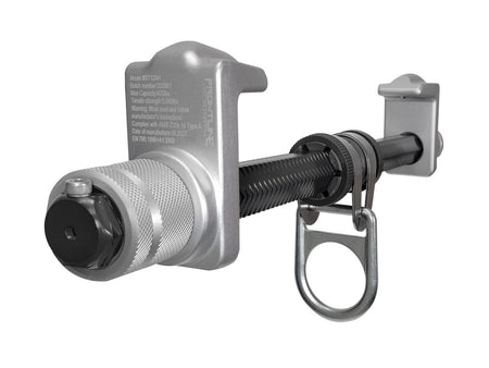 Constructed from lightweight aluminum alloy, the slider anchor is easy to transport while delivering robust performance in tough jobsite conditions. It adjusts quickly without tools to fit I-beam flanges from 3" up to 12" or 18" wide, depending on model. A rotating D-ring at the center allows vertical and horizontal movement, enhancing access to various work areas with minimal hassle.