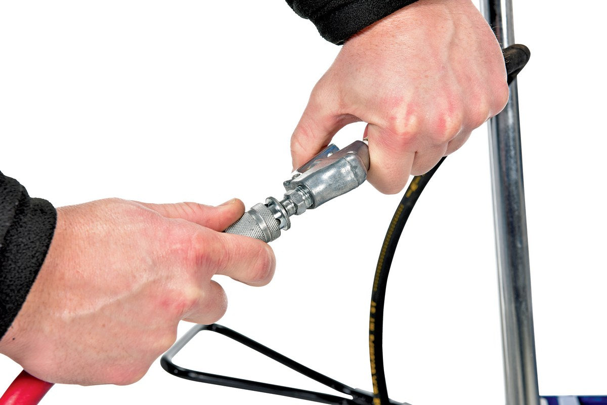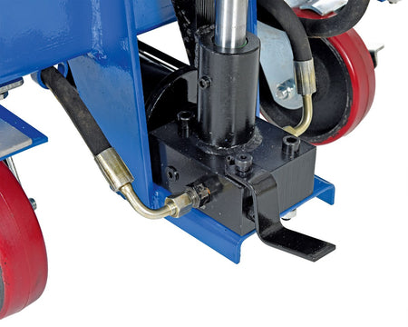 The Vestil AIR-1500-D Air/Hydraulic Scissor Lift Cart delivers powerful lifting performance with the flexibility of both air-powered hydraulic operation and a two-speed manual foot pump for minor height adjustments or use without air supply. With a robust 1,500 lb. weight capacity, this heavy-duty lift cart is perfect for demanding industrial environments. Its poly-on-poly casters provide smooth rolling even under heavy loads, while its carbon steel frame ensures long-lasting durability.