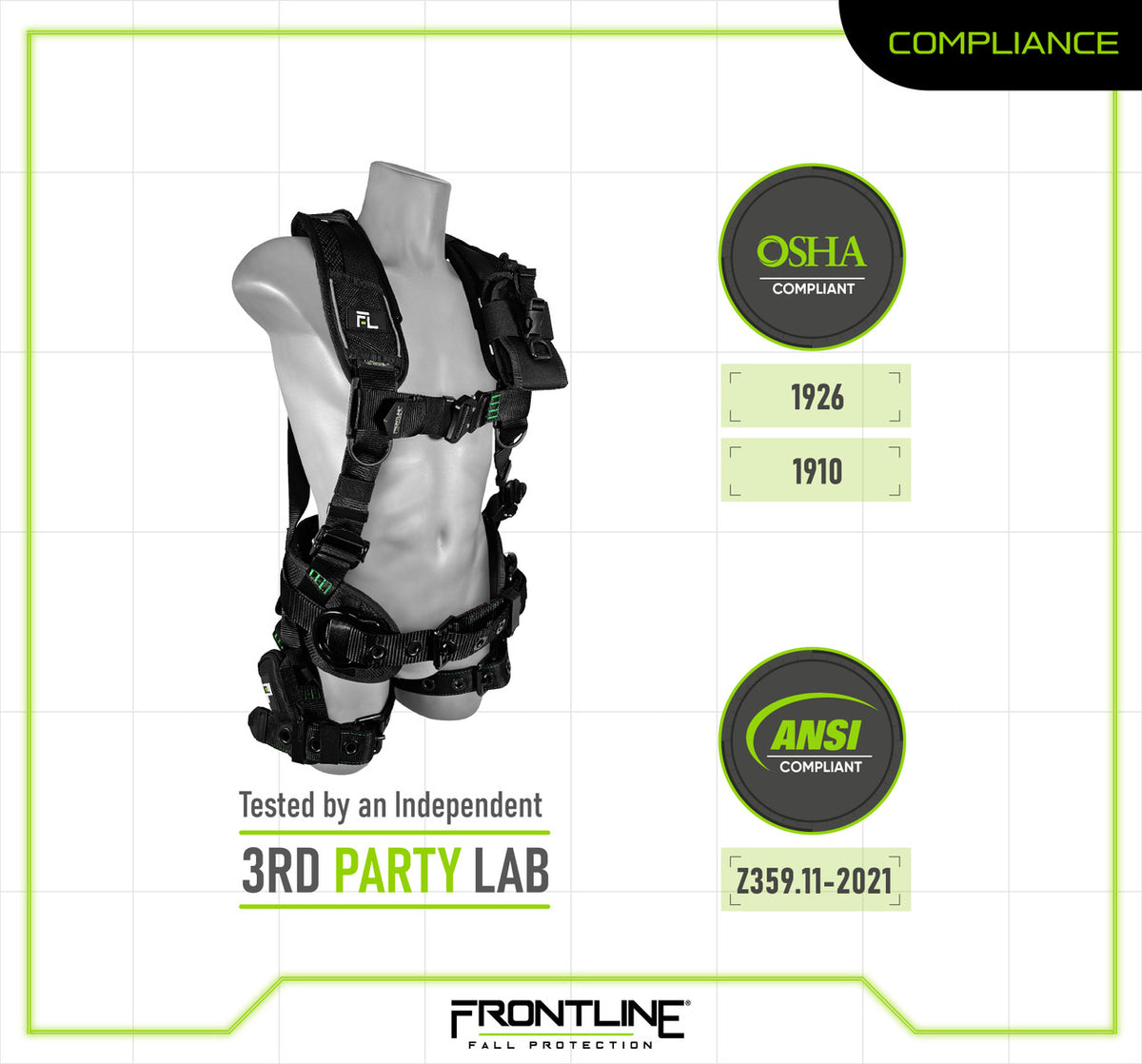 The Frontline Elite™ 250CTB Construction Harness is engineered for all-day comfort, high durability, and uncompromised safety. Designed for construction professionals, this harness features all-aluminum hardware for reduced weight and enhanced freedom of movement while maintaining robust strength and compliance.