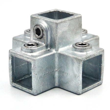 The Easyfit Four Socket Cross – Square (EFSQ24G-25) is designed to create a four-way connection to a vertical upright using 1" x 1" (25 mm) square tubing. It allows horizontal tubes to intersect at 90 degrees on all sides of the post, making it ideal for modular frames, shelving, and structural grids.