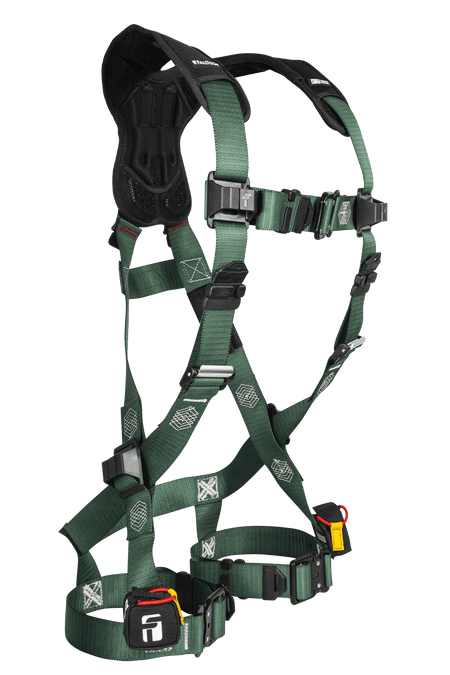 Its filament-level treated polyester webbing features an anti-microbial and moisture-repellent coating for maximum longevity in harsh work environments. Advanced gel padding disperses pressure evenly to eliminate hot spots and ensure all-day comfort. The Comfort Legs® lateral leg strap design enhances mobility, while the ArrowGrip® dorsal D-ring plate minimizes slippage for a secure, consistent fit. Quick-connect chest and leg buckles feature visual indicators for easy and reliable connection. The harness also includes an adjustable suspension trauma relief system and meets ANSI Z359.11-2021 safety standards for performance and compliance.