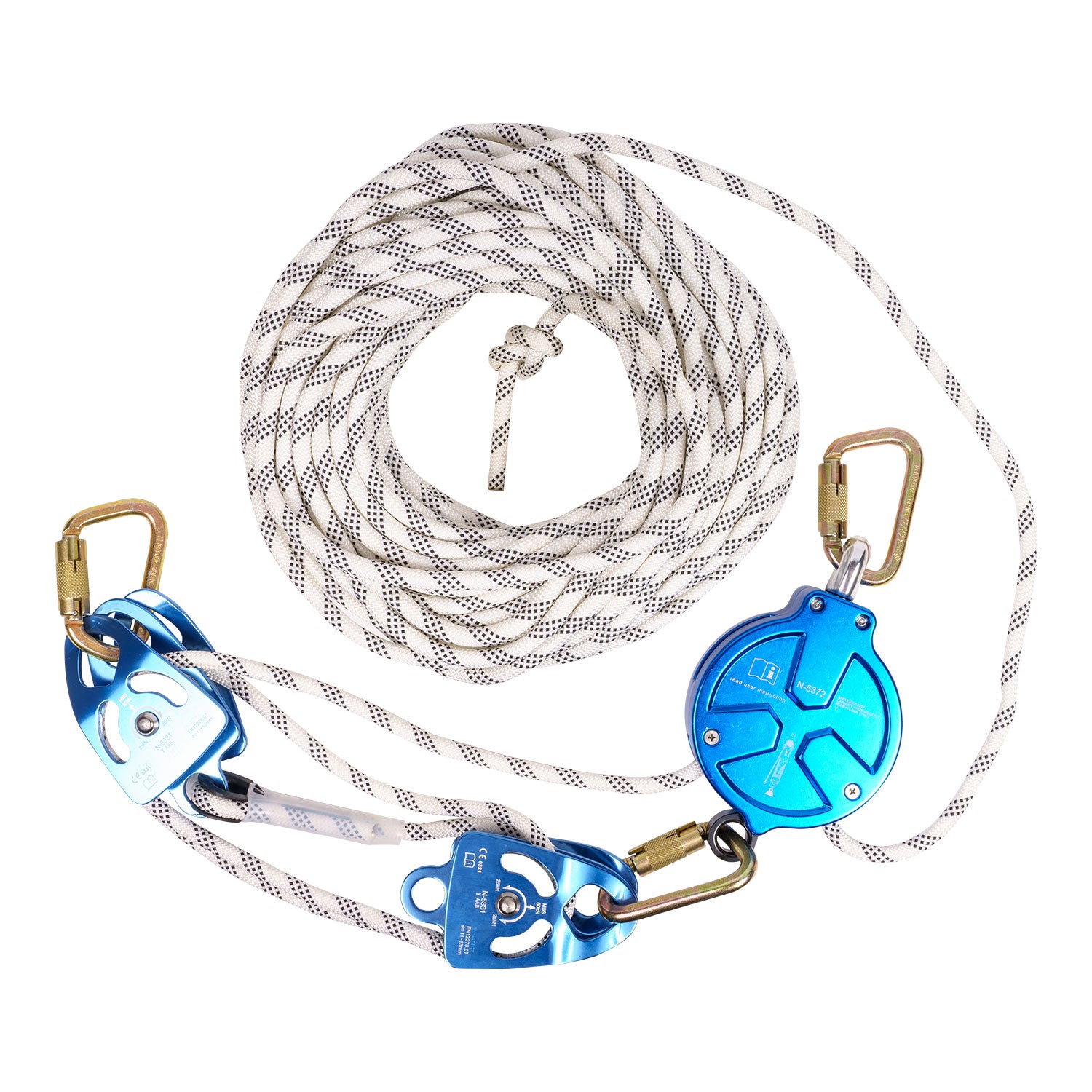 5 to 1 Rescue Kit complete with 150 feet of rope included. With a heavy-duty waterproof bag for storage. The kit includes an integral braking system in case of accidental release of rope by the rescuer.