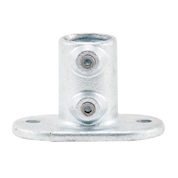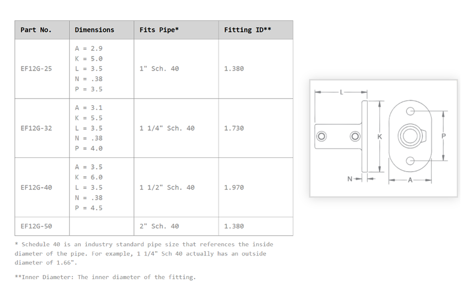 The Easyfit Railing Base Flange (EF12G) is designed to securely anchor vertical posts to solid surfaces such as concrete, wood, or steel. With two 1/2" mounting holes and two steel set screws, this fitting provides a stable base for handrails, guardrails, and other pipe-based structural systems.