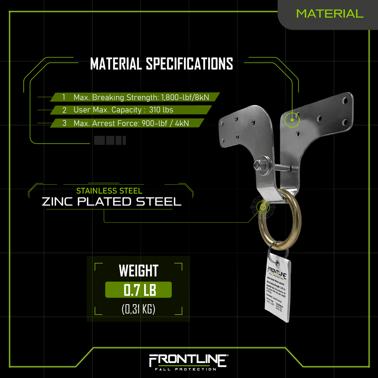 The Frontline ROWT18 Roof Wood Truss Anchor provides a secure and efficient anchorage solution for use on structural wood members in residential or commercial roofing applications. Designed for quick installation, this lightweight anchor can be mounted at various angles on new or existing wooden trusses.