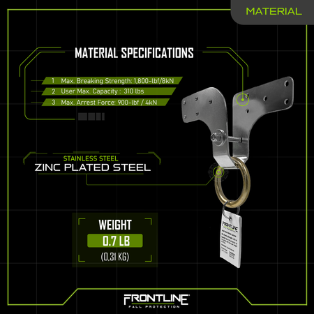 Constructed from stainless steel and zinc-plated steel, the ROWT18 offers durability and corrosion resistance for long-term reliability. Its compact size and ease of installation make it an ideal choice for temporary or permanent fall protection setups on wood structures.