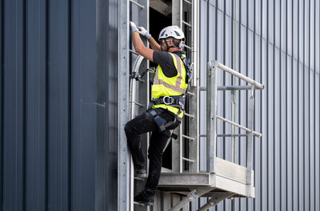 The system includes a smooth-gliding trolley with an integrated energy absorber, allowing for safe, hands-free movement while ascending or descending. It easily retrofits to existing ladder systems and supports up to two users. Available in multiple lengths, the Securail Pro is compatible with various roof access extensions and is built to withstand demanding work environments.