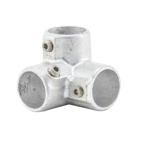 The Easyfit Side Outlet Elbow (EF20G) is a three-socket corner fitting designed to connect two top rails to a vertical post at a 90-degree angle. It is most commonly used on handrails, guardrails, and safety railings, especially where corner transitions are needed. It's also suitable for building square or box-like frames in pipe-based structures.