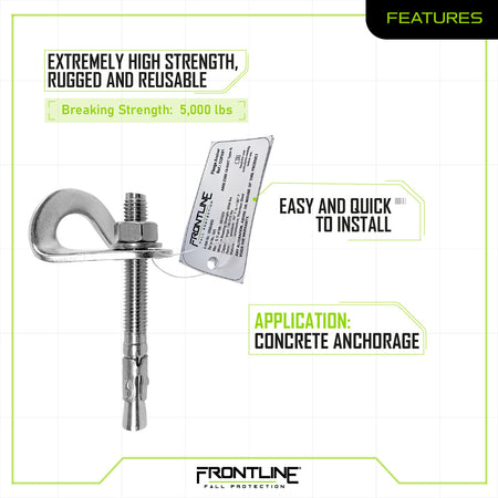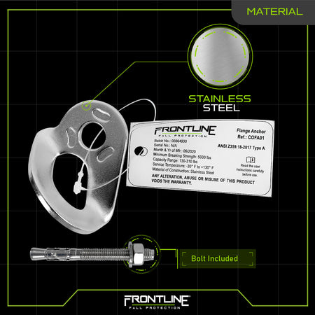 The Frontline Stainless Steel Flange Anchor is a compact, durable anchorage solution designed for secure installation on steel structures, walls, ceilings, and rooftops. Compatible with both chemical and mechanical fasteners, this anchor fits pre-drilled holes of 0.39" and 0.47" with a minimum drilling depth of 3.74".