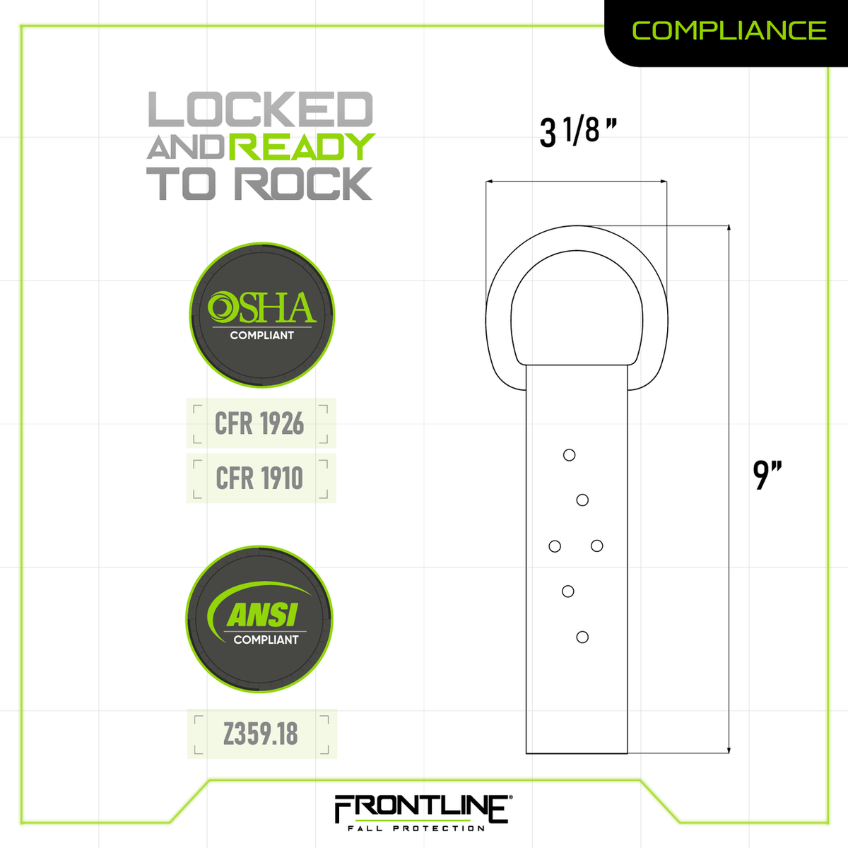 The Frontline ROSU01SS Stainless Steel Permanent Roof Anchor is designed for secure installation on wooden structural roof members. Engineered for single-user tie-off, this economical anchor is built from corrosion-resistant stainless steel, making it ideal for permanent applications in both residential and commercial roofing.
