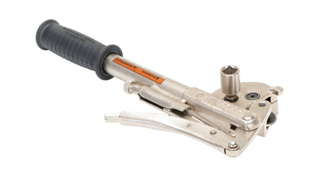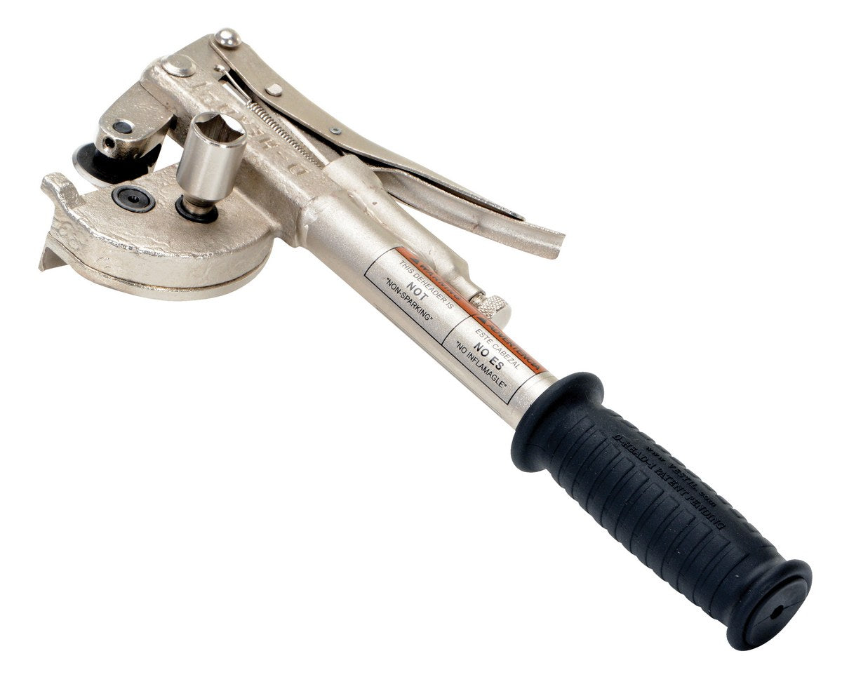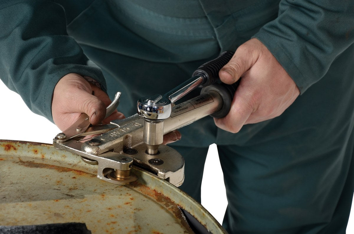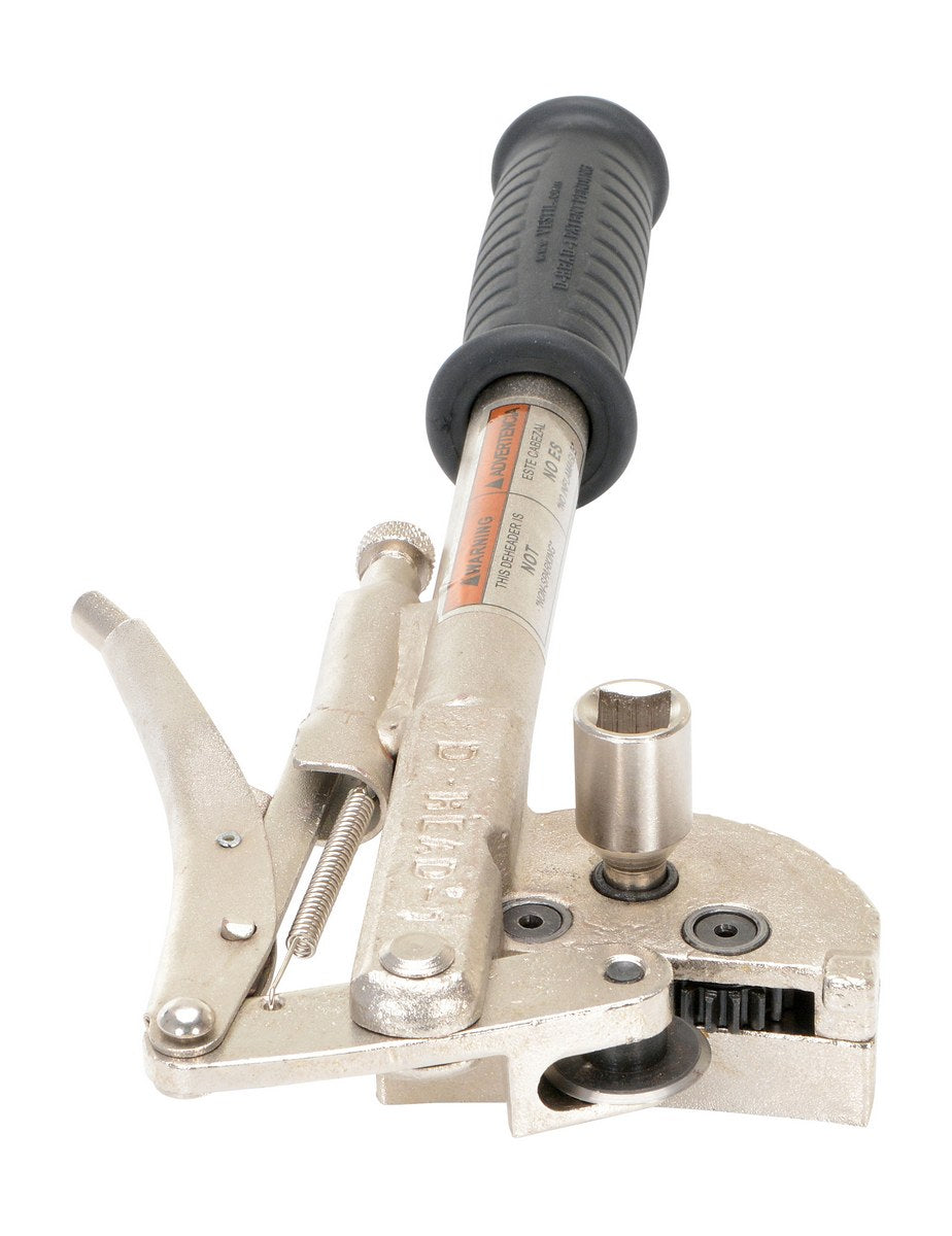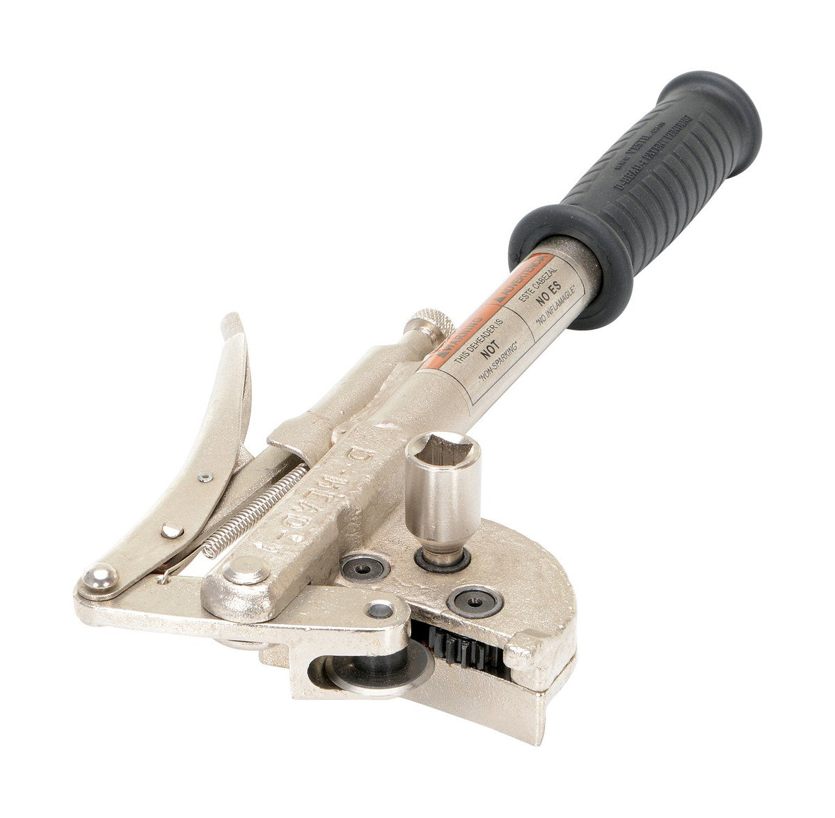 The Vestil Model D-HEAD-1 Steel Manual Drum Deheader quickly removes the head of steel drums with ease. Its vice-grip style mechanism securely attaches to the drum, while the ratchet drive allows operation with either a ½ in manual ratchet wrench or an electric drill.