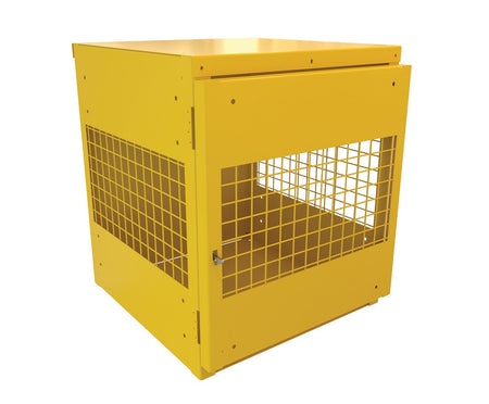 The Vestil CYL-V-4 Steel Vertical Cylinder Cabinet provides safe, compliant storage for up to four vertical gas cylinders. Built with rugged 10-gauge steel, the cabinet features expanded steel mesh sides and door for ventilation and visibility, with a solid steel top, back, and bottom for durability. The hinged lockable door (padlock not included) and included securing chains ensure cylinder safety, while lag holes in the base allow the unit to be anchored. Finished in safety yellow with bold “FLAMMABLE – NO SMOKING” signage, this cabinet meets OSHA 1910.110 (f)(6)(ii), NFPA 55/58, and CGA P-1 standards.
