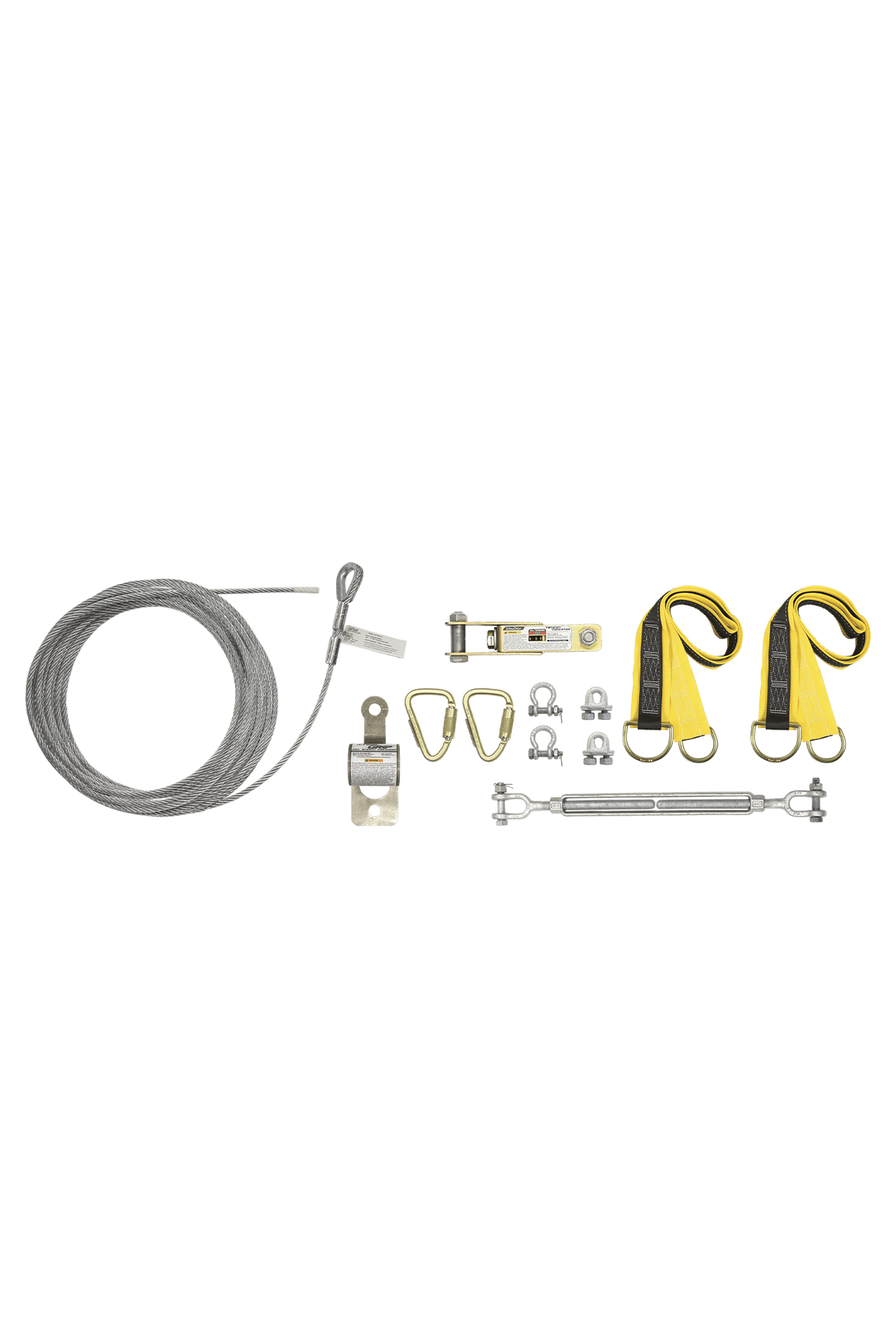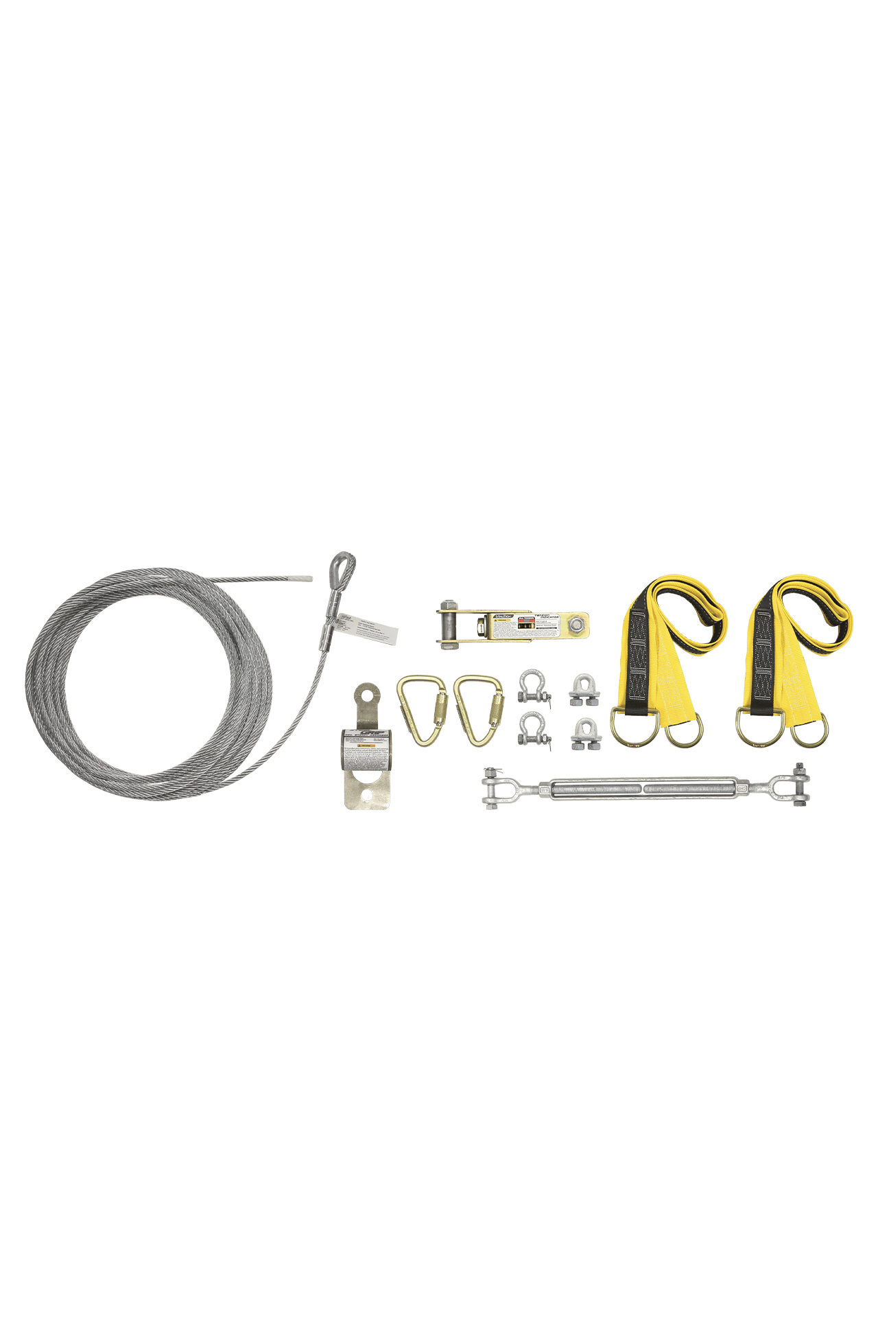 The FallTech SteelGrip® Temporary Cable Horizontal Lifeline System with Web Pass-Through Anchors provides a complete and flexible fall protection solution for temporary jobsite applications. This 60-foot single-span system is designed for quick installation and reliable performance using user-friendly web anchorage.
