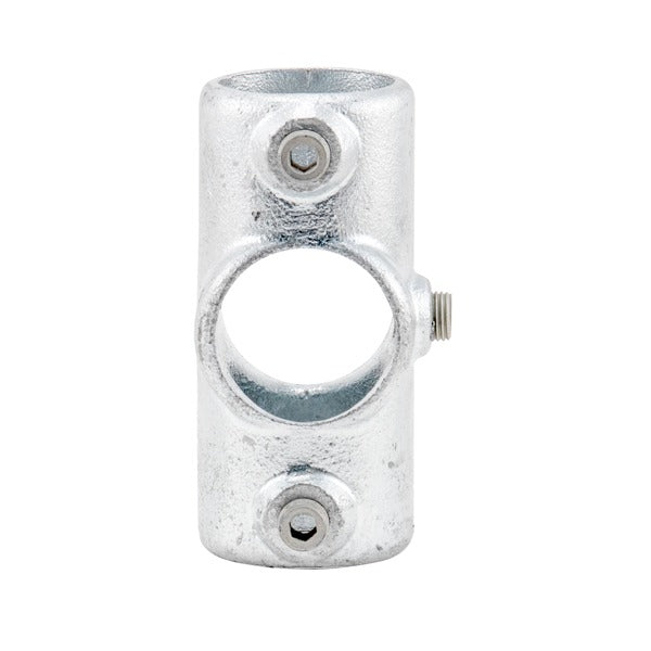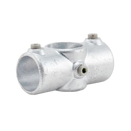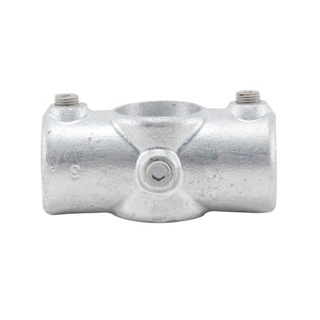 The Easyfit Two Socket Cross (EF22G) creates a cross-shaped connection by joining two horizontal pipes to a vertical post. Commonly used in guardrails and handrails, this fitting is ideal for attaching mid-rails to posts and can also be incorporated into a variety of custom pipe-based structures.