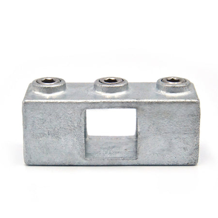 Compatible with 25 mm or 40 mm galvanized square tubing of 2 mm wall thickness, this fitting installs easily using an allen wrench and features steel set screws for a secure and stable connection.